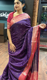 Soft Silk Saree, featuring a timeless checkered pattern paired with a bold contrast border. Designed for effortless elegance, this saree brings together traditional weaving techniques and modern aesthetic appeal.