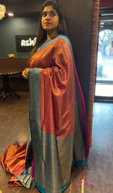 Woven Border: The border of the saree is crafted using intricate weaving techniques, often featuring traditional motifs or designs. This adds a distinctive flair to the saree, highlighting its luxurious appeal.