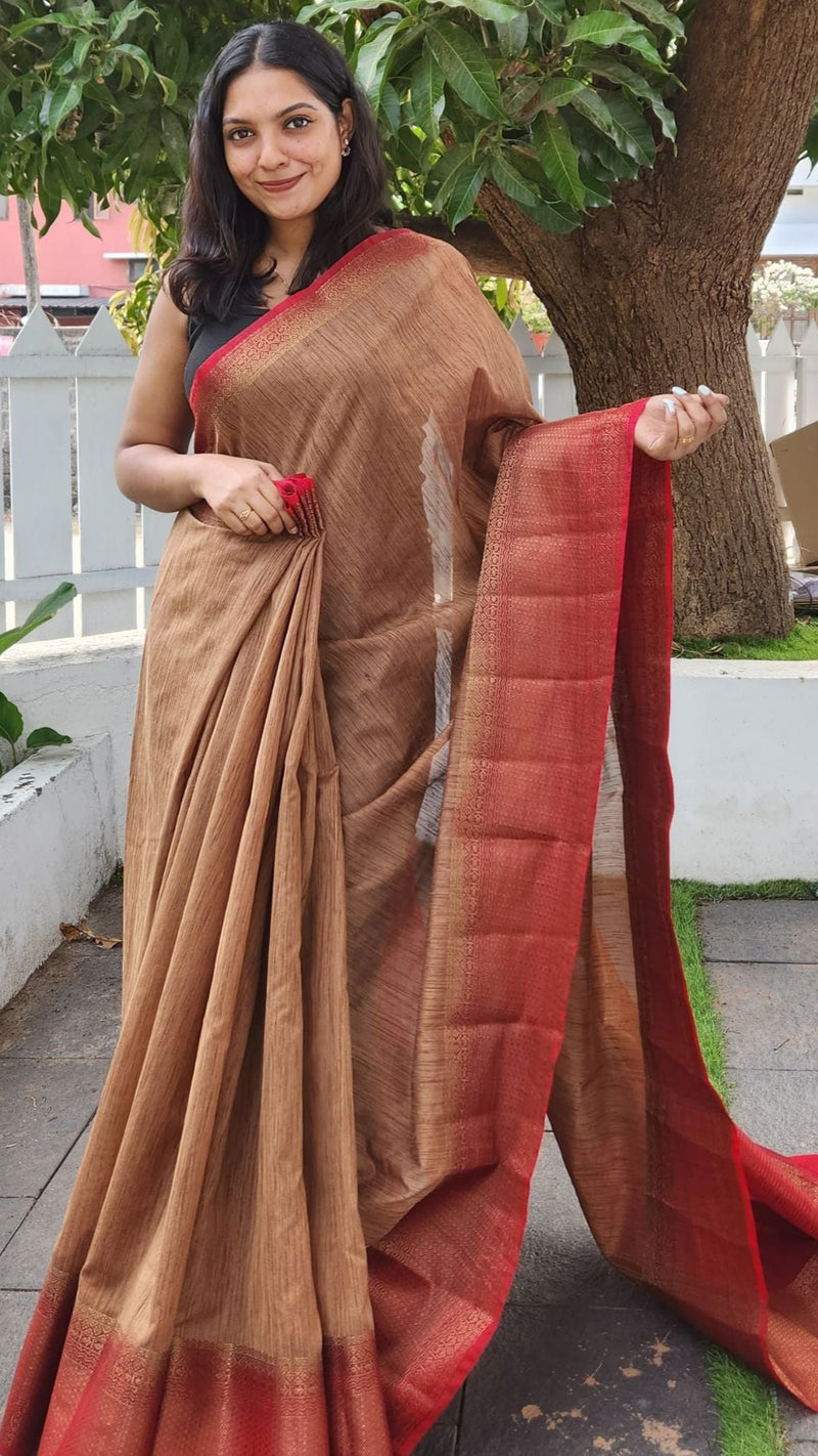 Semi Linen Saree with Woven Border is a blend of traditional charm and modern comfort. Linen is known for its natural, airy, and breathable qualities, and when combined with a woven border, it creates a perfect mix of elegance and ease.