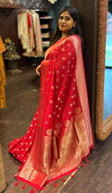Temple border: This is a classic feature of many traditional sarees, especially those from South India. The temple border typically has intricate geometric or divine motifs, often inspired by temple architecture or deities. The border usually adds a regal and sacred touch to the saree.